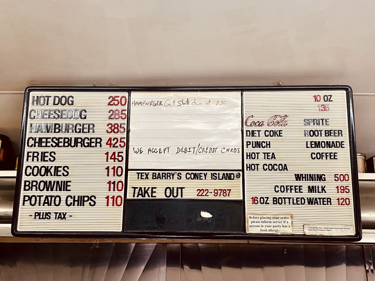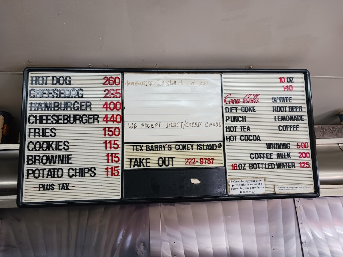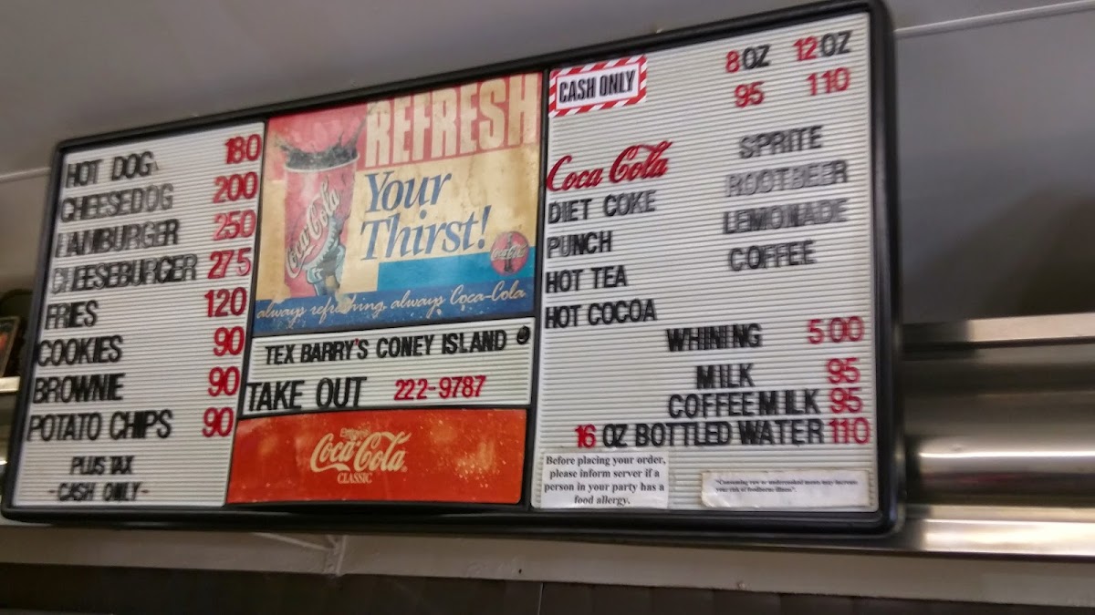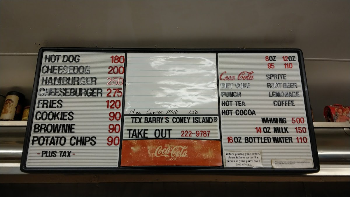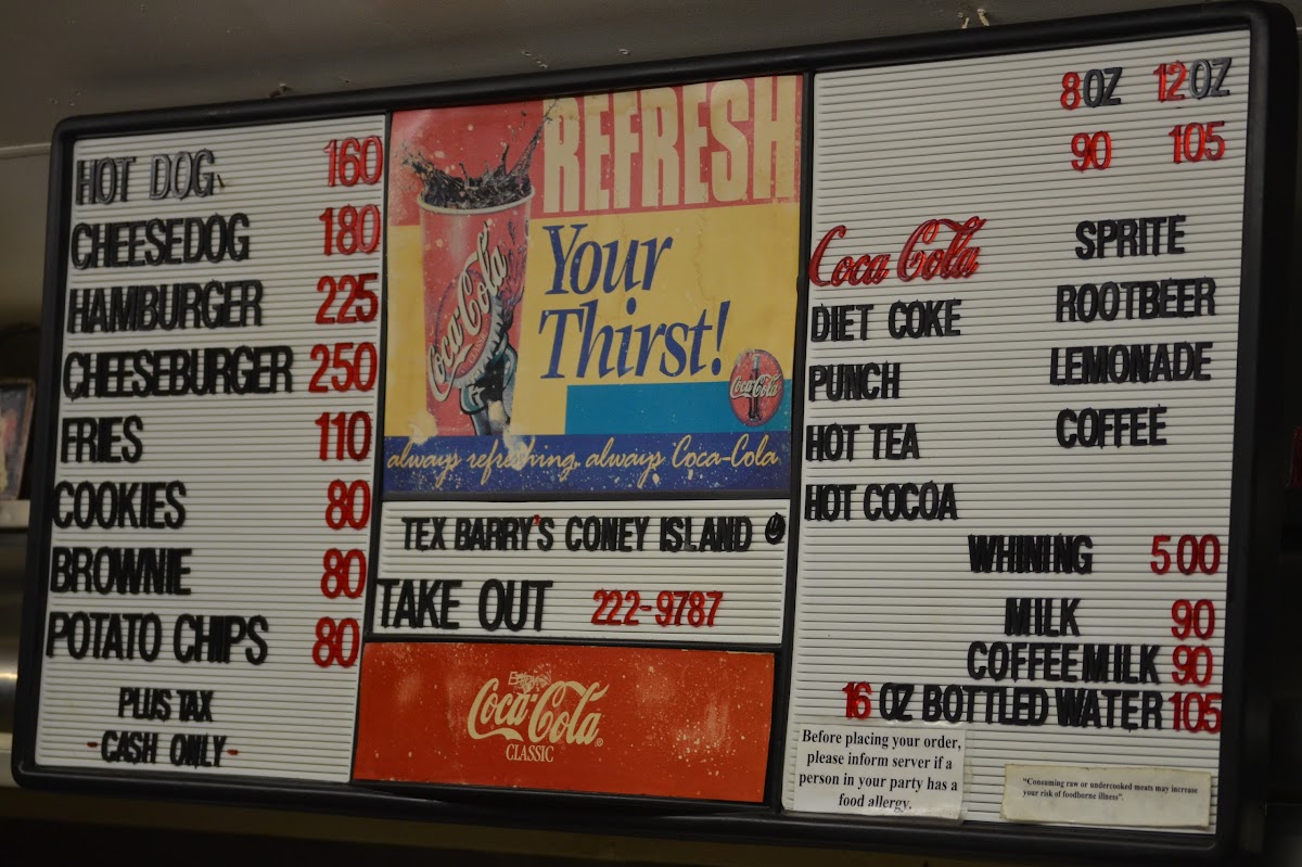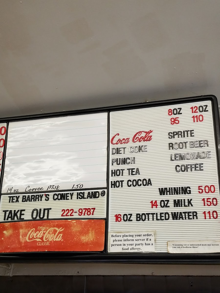 Coke, Diet Coke, Root Beer, Sprite, Fruit Punch, and Lemonade